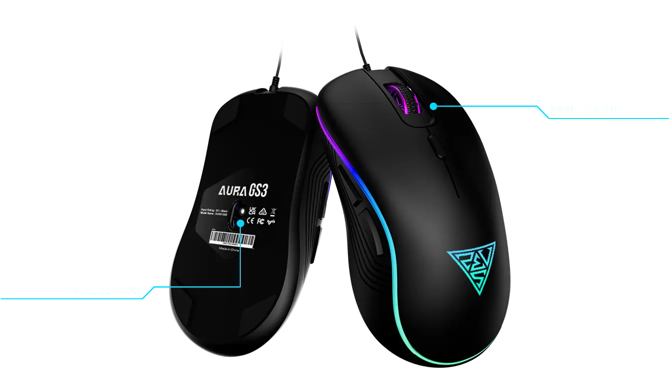 The AURA GS3 7-color cycle of breathing RGB lighting gaming mouse is engineered to meet the diverse demands of gamers. Its cutting-edge ergonomic design and a gaming-grade optical sensor provide a competitive advantage in gaming scenarios.